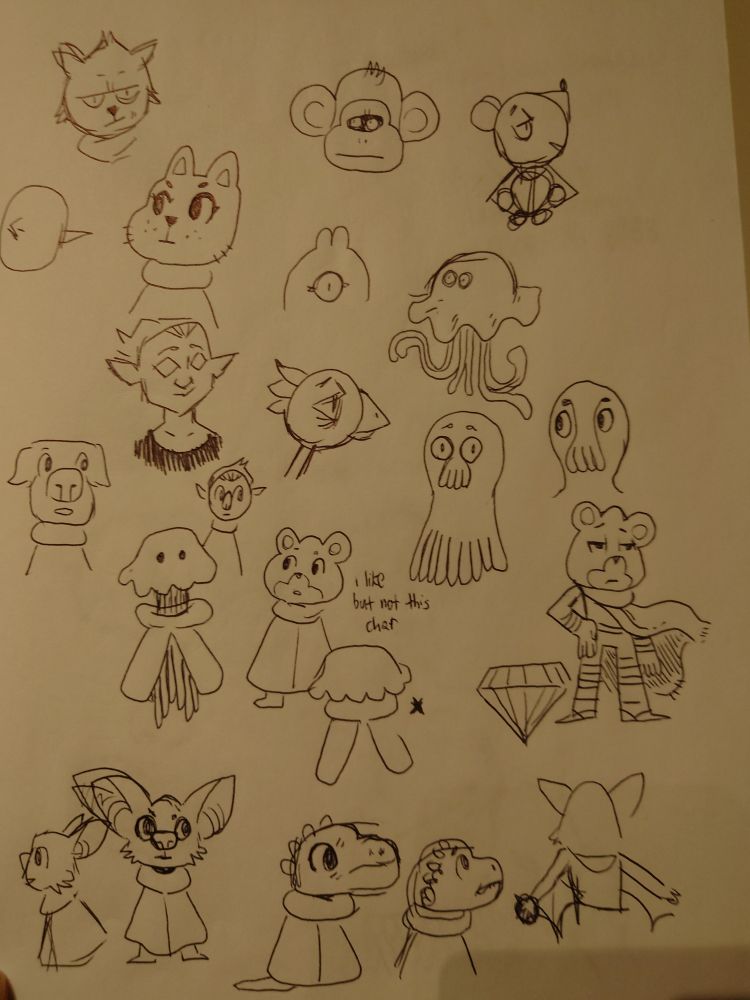 Found a sketchbook with a bunch of early Cosmic Canines stuff in it. First sketches of Pablo's redesign, Toni's siblings from a very early draft, lot of ideas for what The Beyonders would look like.