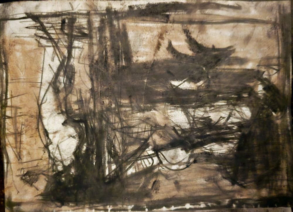 "Sur la mer", charcoal, ochre chalk on paper, 15x21cm