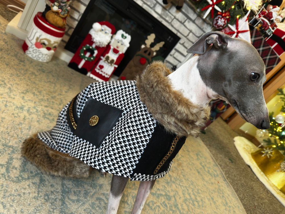His majesty Prince Cenzo got a new custom coat today. #italiangreyhound