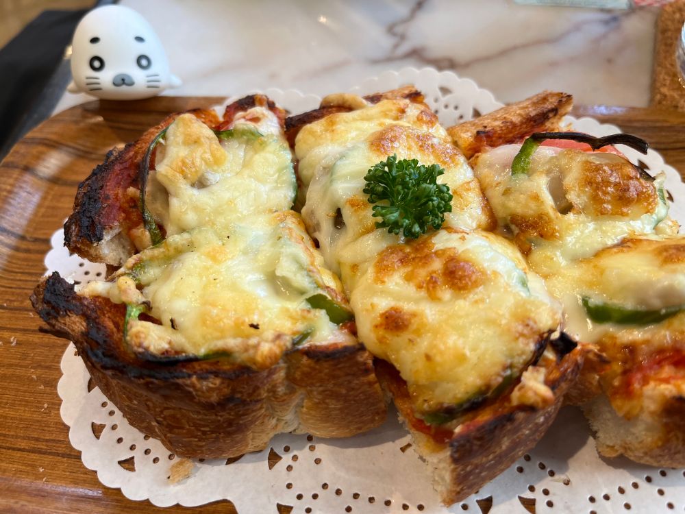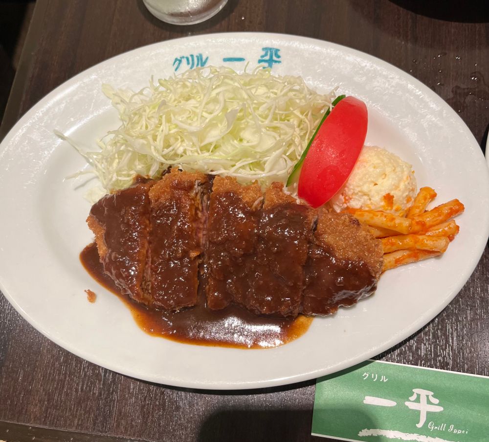 今日初めて外に出て歩きガーミンを喜ばせた後デブの食事をしている