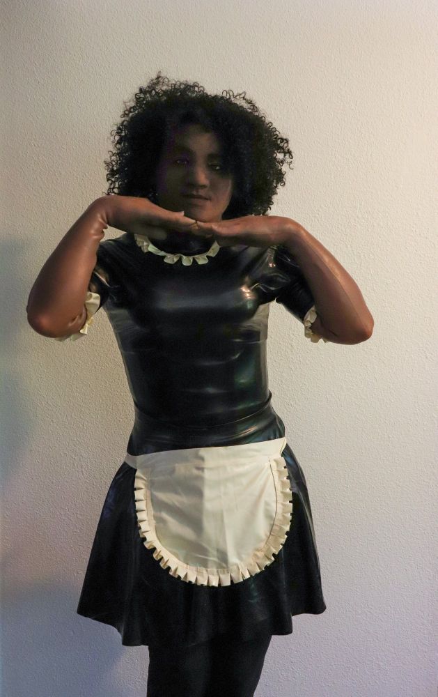 A brown-skinned latex maid