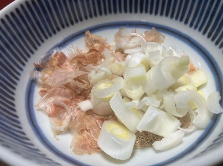 カツオ節・顆粒ダシ・ネギを先入れした時の写真がこちら。