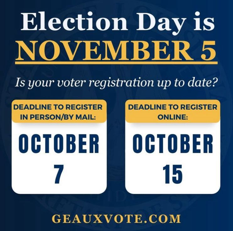 2. Early voting begins October 18. Check out your early voting location: voterportal.sos.la.gov/earlyvoting