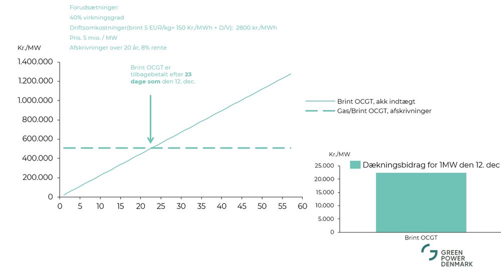 Med en brintpris på 5 EUR/kg falder dækningsbidraget til 22.000kr/MW den 12/12.