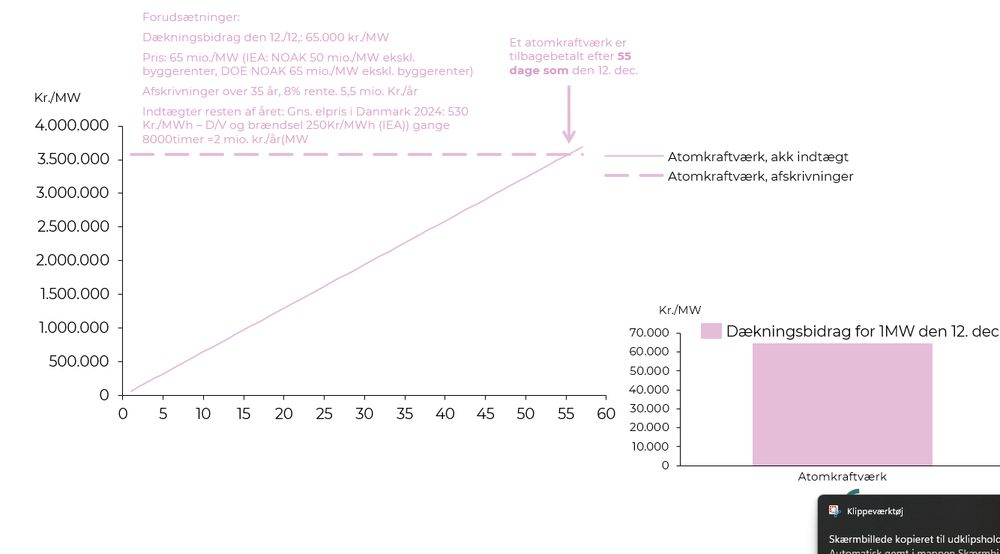 Alt i alt vil det kræve 55 dage som den 12. før der er en business case for et atomkraftværk.