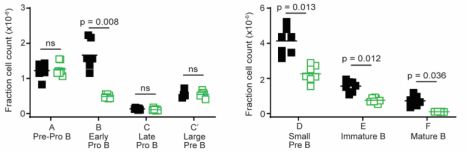 Linked to throttling of B cell development at key checkpoints in bone marrow