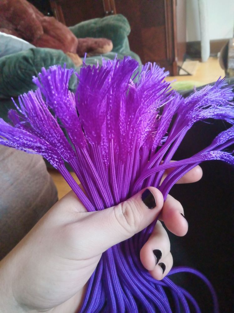Little project before bed. Making this flogger a bit spicier. About half way done now.