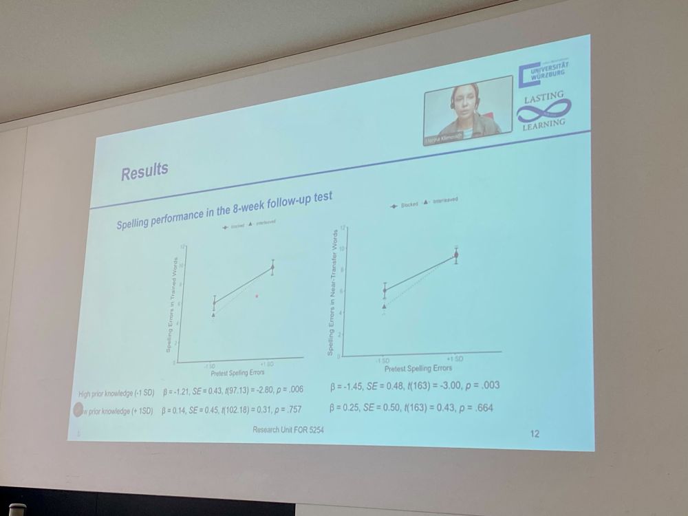 At our Lasting Learning symposium “Interleaved practice in meaningful learning” at #EARLI2025 #Graz, @marinaklimovich.bsky.social presented two studies on the benefits of interleaved practice for third graders learning German spelling rules. ✨