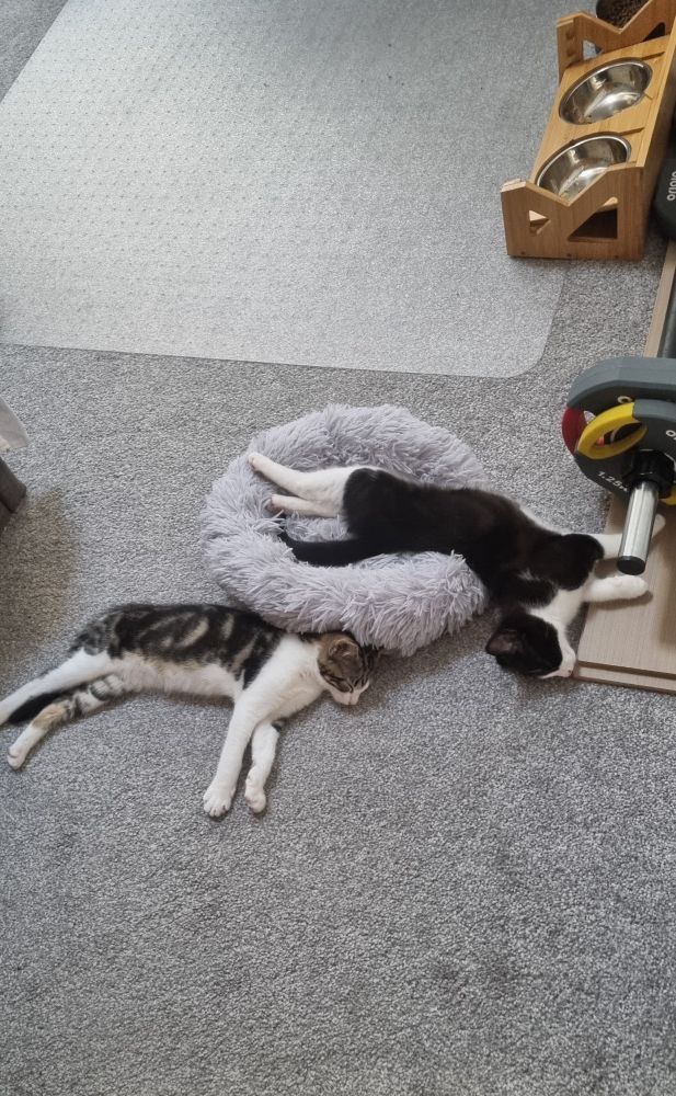 Despite having cat trees & beds all over the house, they've decided to comandeer the dogs' beds, leaving the dogs feeling quite put out.