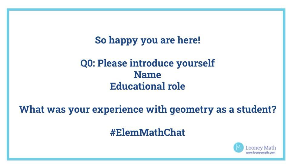 Let’s talk about geometry. But first … please introduce answering prompt below. Please include #ElemMathChat in your responses! #looneymath