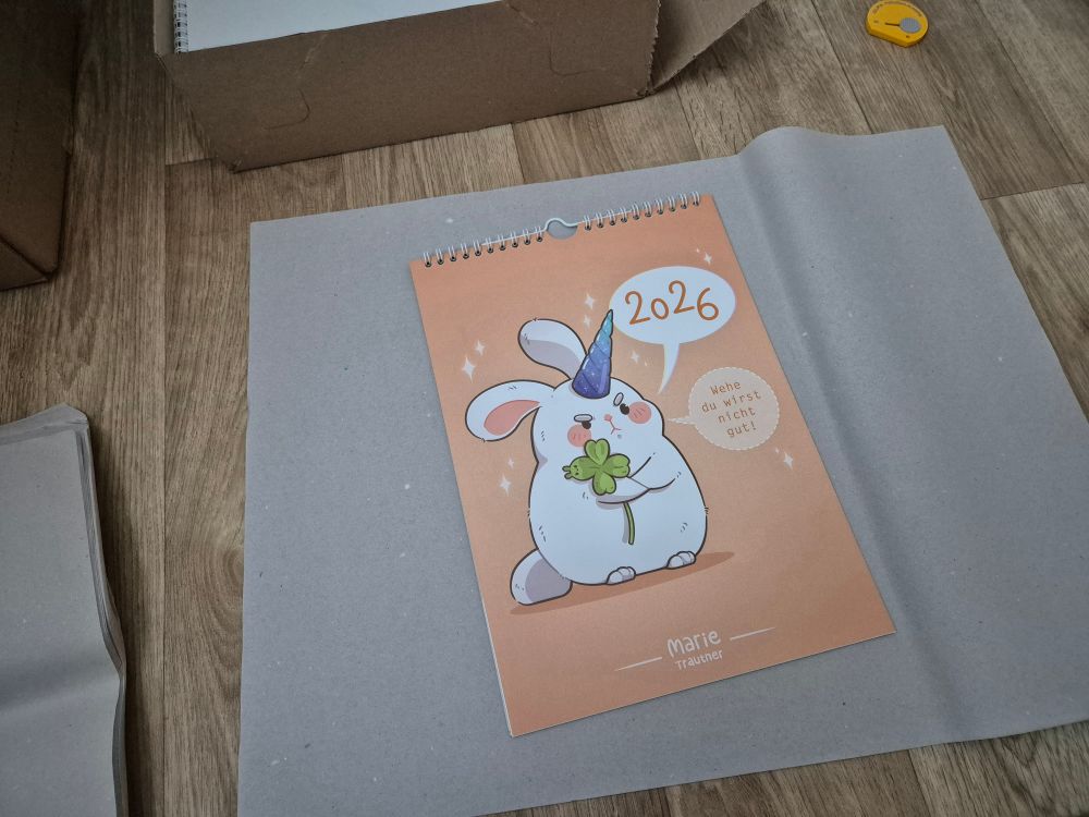 Im besten Fall kommen die Kalender Montag/Dienstag bei mir an und wenn dann noch der Druck bzw die Qualität stimmt, wird Mitte/Ende der Woche verschickt!