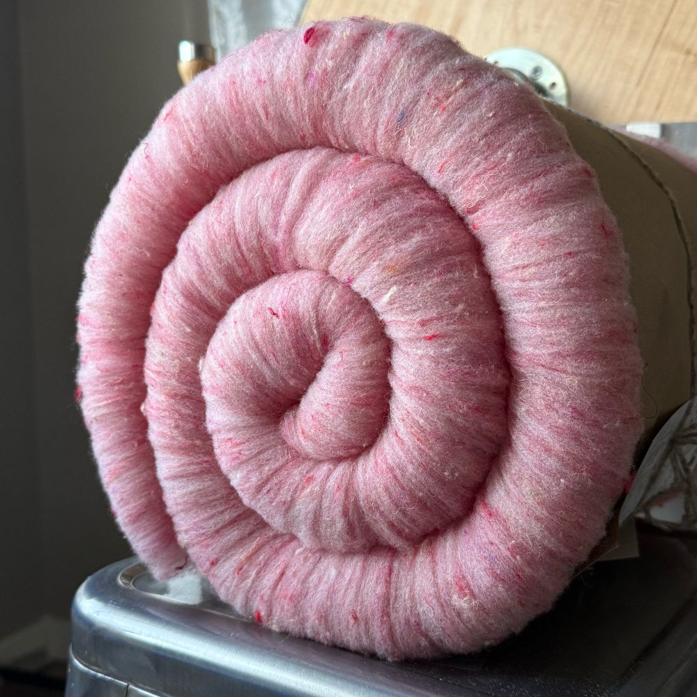 Yay for a long weekend to give me time to prep some fiber. I’ve run this guts mix from @mellyknits.bsky.social through the drum carder 4 times. Debating whether to do another pass….