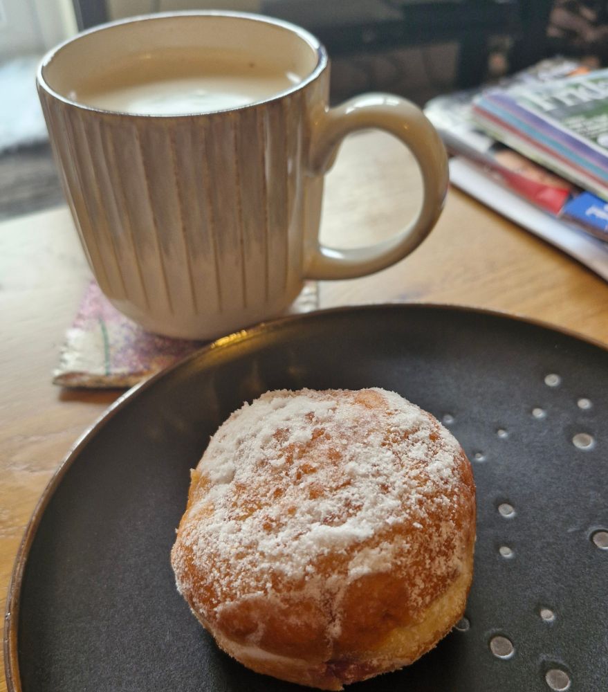 Day off and the weather is a bit poop ... Took myself off to Home Bargains and Aldi .. Fatal ... Having mid morning snack of baileys flavoured latté and a jam doughnut... ☺️ #yum