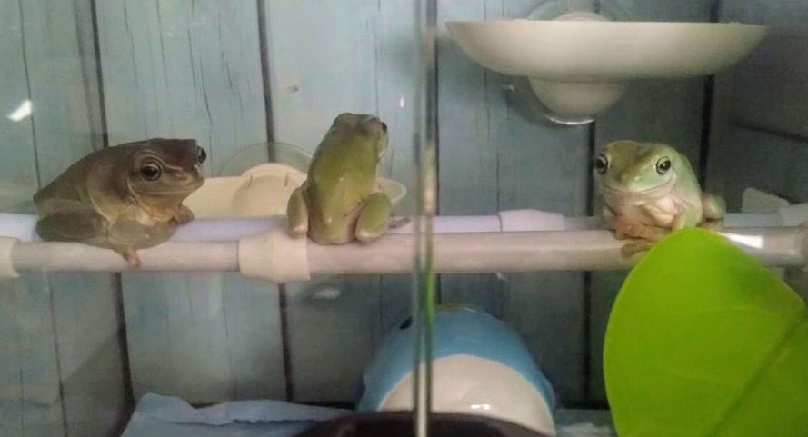 先住くーちゃんとオタマジャクシから育てたうみ&りく兄弟の同居開始🏡ひとつ屋根の下、今のところトラブルなく暮らしてます🐸