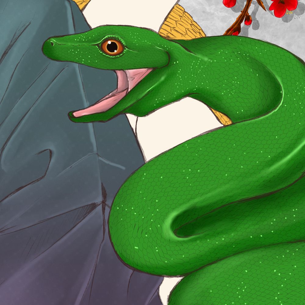 最近アナログで描いていた頃の作品データか発掘されたので、最新のヘビ絵と過去絵を添付します〜!