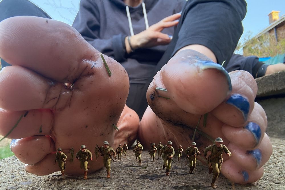 I think even this army can’t deal my my huge feet!! #giantess #dirtyfeet #soles #tinies #crushing linktr.ee/mommabear47