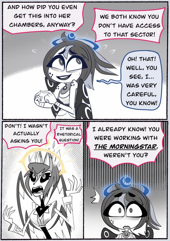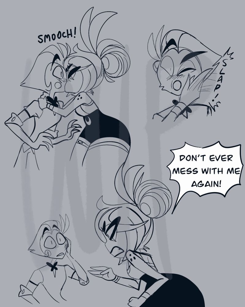 im so tired… in between working on backstory comic i also tried working on some Luci/Dee stuff too… but then i also designed another HazbinOC for a future storyline… i wish i could just post my sketches and be ok with it but i overthink it too much ;^;