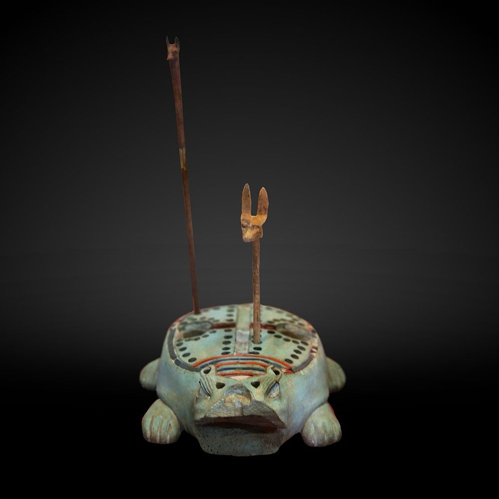 Inspiration: Ancient Egyptian game Hounds & Jackals. Most surviving versions of this game are large but I like to imagine this one being the size of my palm.