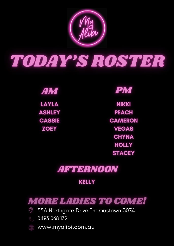 #MyAlibi #MelbourneBrothel #HumpDay #WednesdayRoster #Thomastown