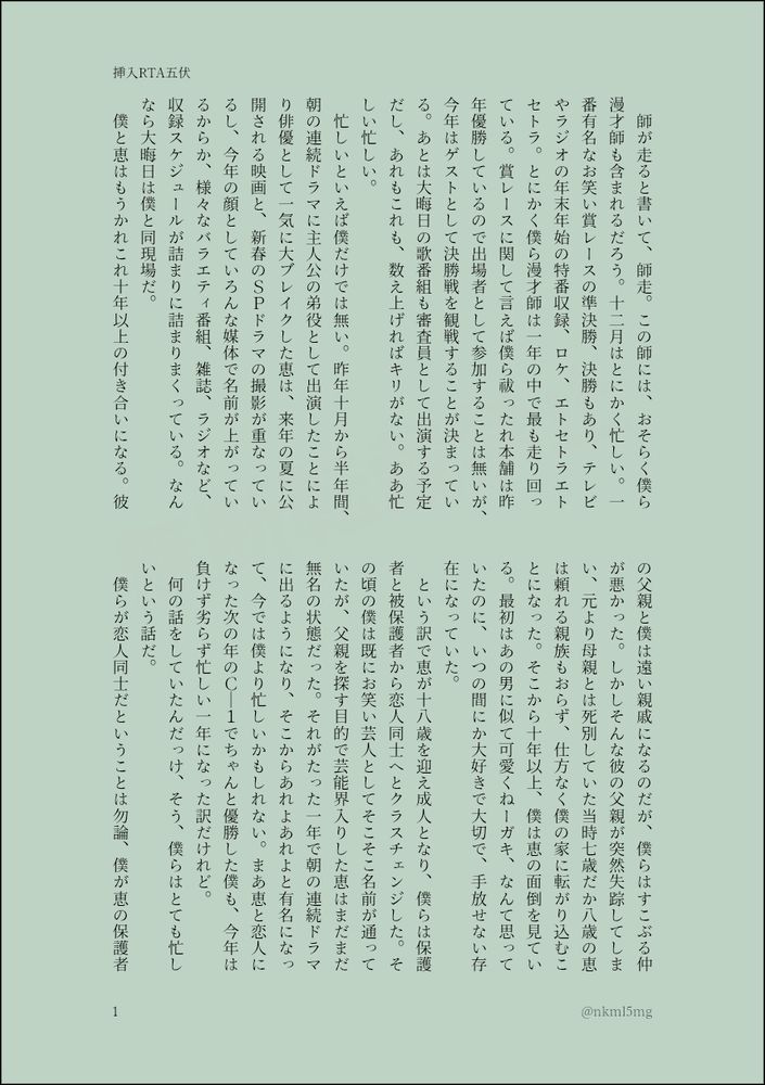 Twitter本垢は同ID(音楽と日常)、腐女子アカウントはnkml5mg
