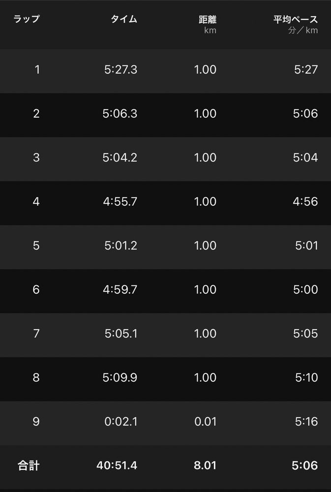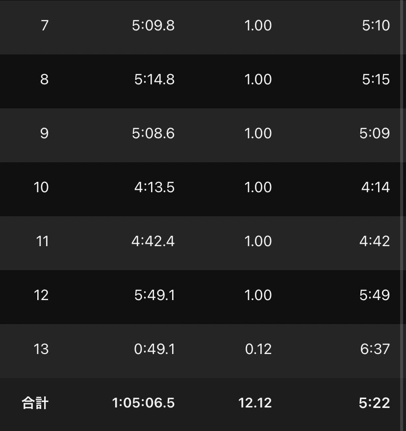 ラストはバテバテだったが、このペースで走り切れたのは収穫。