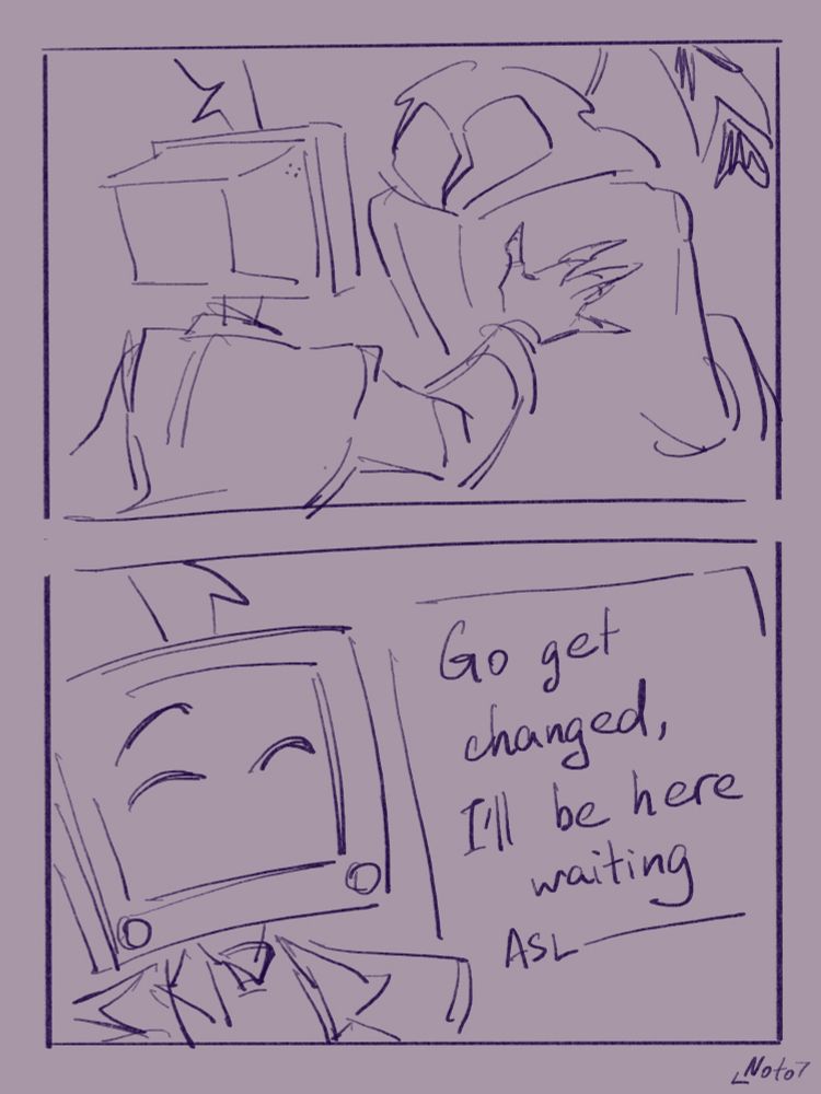 Ooo this was great) pls do more! I wanna see Val walk around with a Tv head demon and scare ppl around XP wonder what they’ll do together uwu