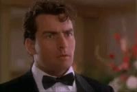 a man wearing a tuxedo and bow tie is looking at the camera .