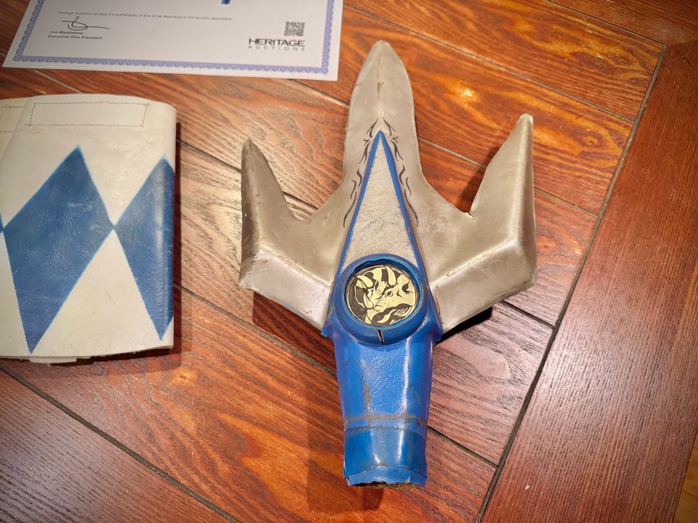 My purchase from the Heritage Auction arrived today and I couldn’t be happier! Had to go with my favorite ranger ever and get the MMPR Blue Ranger accessories including the cuffs worn by the legend @officialdavidyost.bsky.social himself. (1/2)