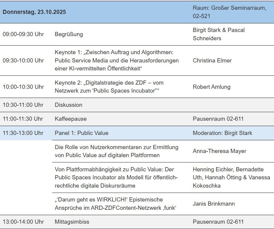 Das Programm zum diesjährigen Workshop des #NetzwerkMedienstrukturen ist online! Uns erwarten 2 Keynotes, 4 Panels, 1 World Café und Zeit, um über Public Value, Risiken und Regulierung von Plattformen zu diskutieren: www.medienkonvergenz.ifp.uni-mainz.de/tagungsprogr...