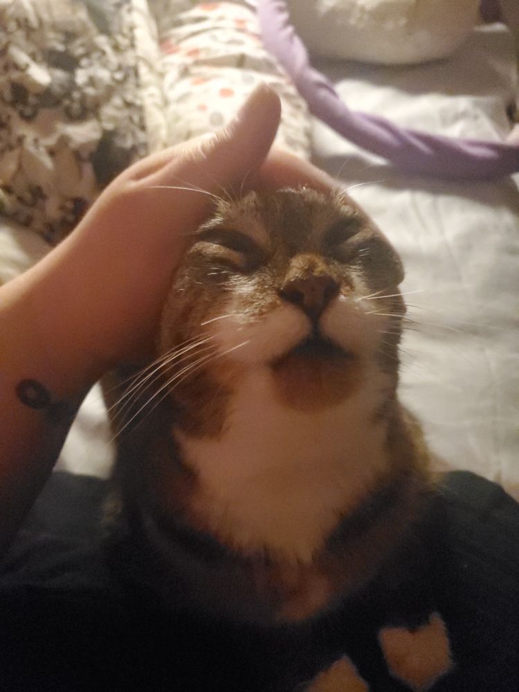 GUYS i was at a gay bar last night and we were gonna sing karaoke and the lady is like hang on im trying set it up tell a story or soemthing. and we talking about our cats and when we got to professor chaos the lady was like omg is she from x shelter she knew my fessor....... my girly pop