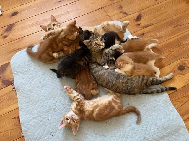 Mein Bruder kümmert sich gerade um 9 kleine Kätzchen (2W, 7M).