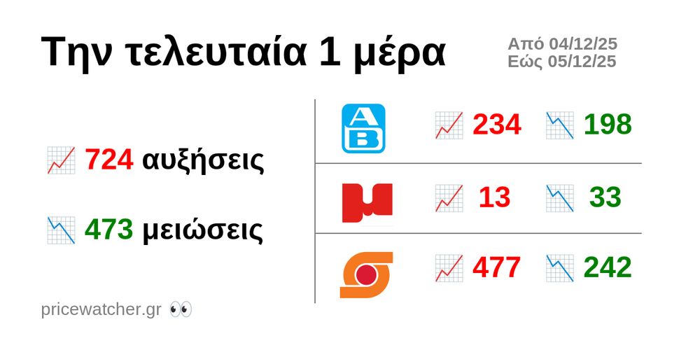 Μεταβολές τιμών από χθες 04/12/2025 μέχρι σήμερα 05/12/2025: