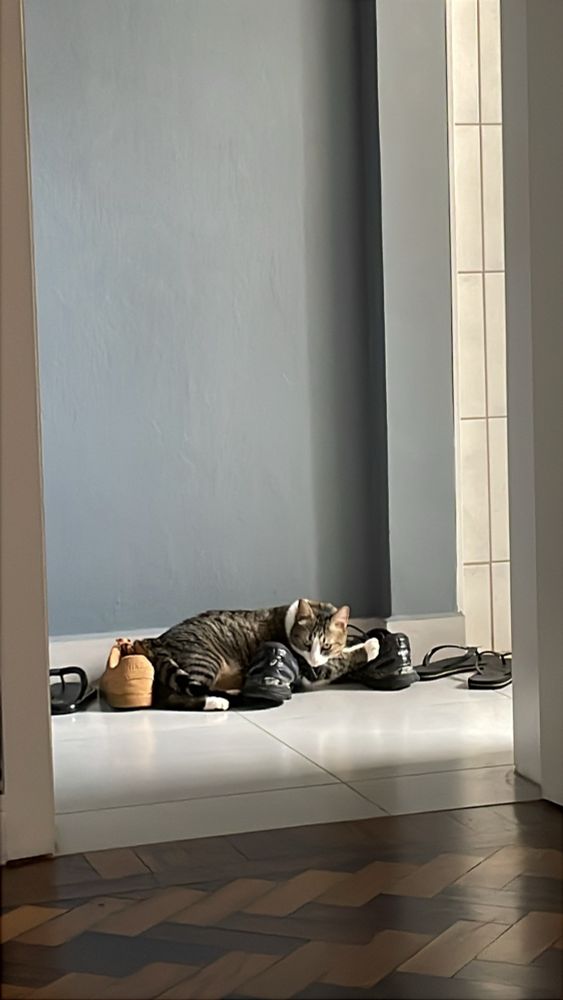 Ele vê a gente se movimentando pra sair e deita em cima dos tênis hehehehehe amo tanto esse pequeno