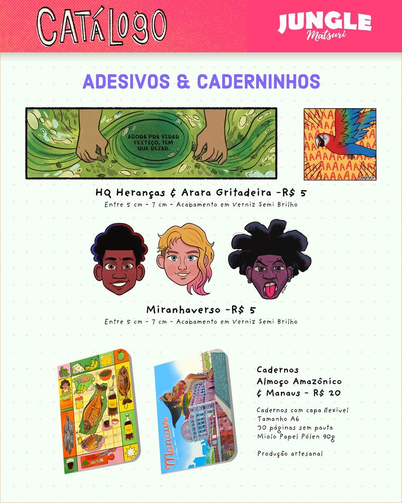 Levando as HQs, prints, bottons e outros produtos. Se liga no catálogo: