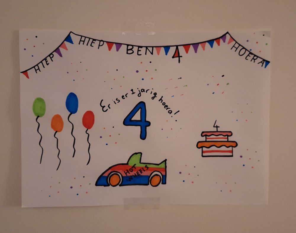 Vanavond voorbereidingen getroffen voor morgen, waaronder deze traditionele verjaardagstekening. Ooit gestart door mijn vader bij mijn zus en ondergetekende 🥰