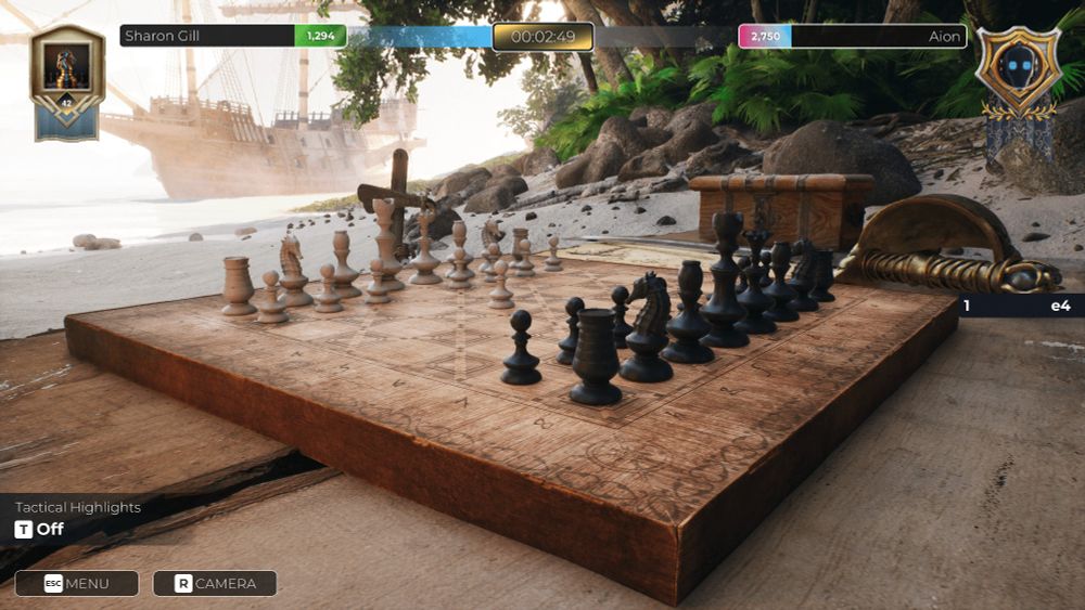 A pirate galleon anchored in crystal-clear Caribbean waters. Just one of four atmospheric new playing locations in Chess Infinity's 'Treasure Island' DLC - out now and FREE until 01.05.25!