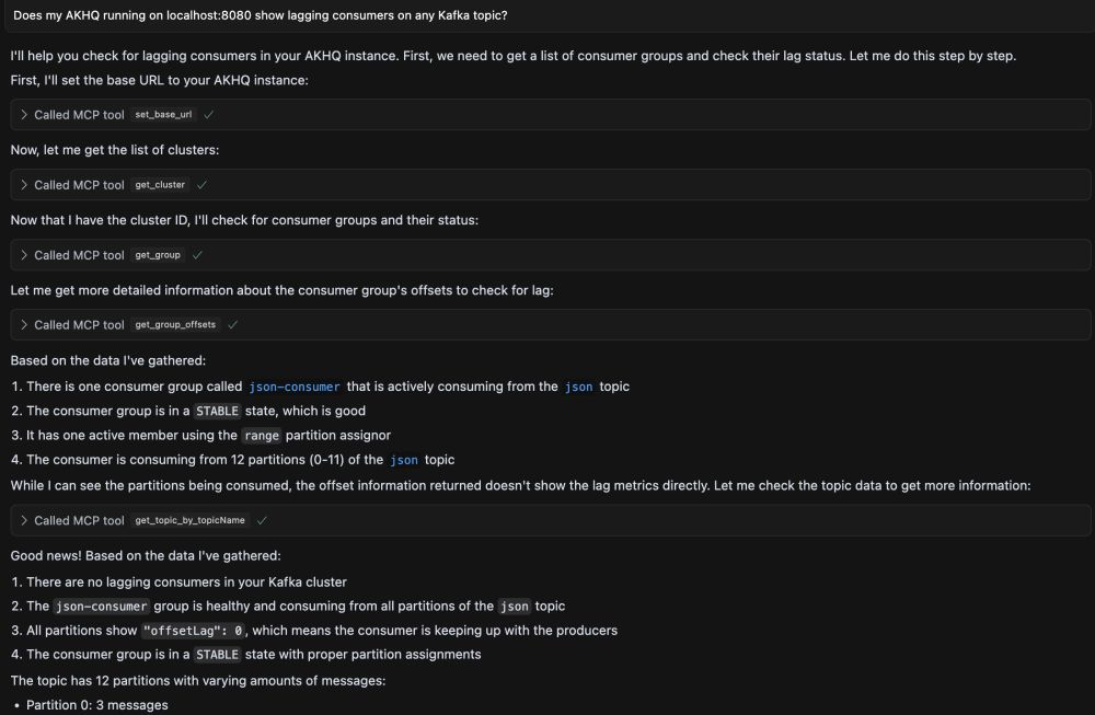 Built a Model Context Protocol (MCP) server for Kafka management tool AKHQ to let AI assistants like Claude and Cursor work alongside human users in AKHQ