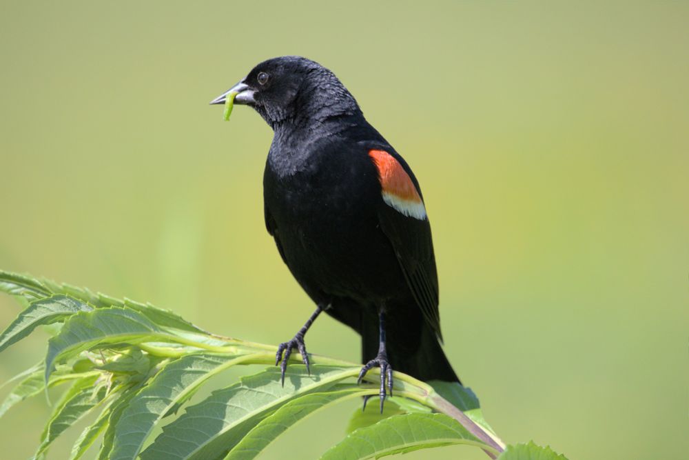 Redwing Black bird eating a worm, 7/8