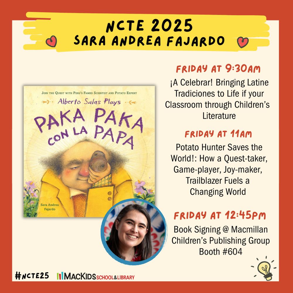 Find me at @ncte.org #NCTE25. Looking forward to sharing more about Alberto Salas Plays Paka Paka con la Papa and Crack Goes the Cascarón.