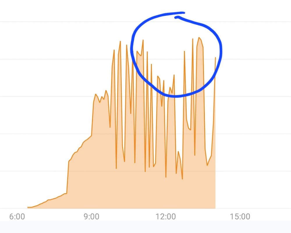 Gedeeltelijke #zonsverduistering mooi te zien in de deuk in de opbrengst van onze zonnepanelen.