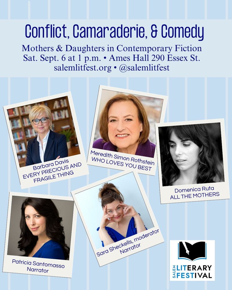 I’m SO excited to meet 2 authors I’ve partnered with ( #MarilynSimonRothstein and #BarbaraDavis) as well as #narrator colleague, #PatriciaSantomasso, and author #DomenicaRuta at this @salemlitfest.bsky.social panel! Join us on 09/06/25 in Salem, MA!