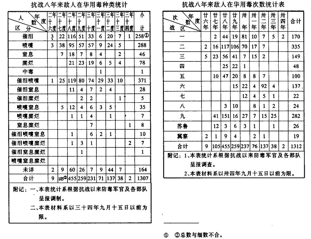 The Chinese government recorded (again, conservatively) a total of 1,312 chemical attacks during the war. The most common chemical agents deployed in battle were tear gas (258 instances), sneezing gas (288), and a combo of the two (371), followed by mustard gas (71) and asphyxiating gas (46).