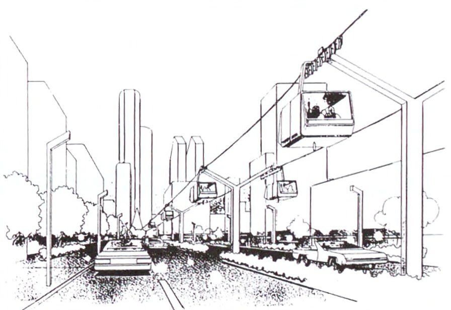1980 年代後半から 1990 年代、臨海部等における低廉な公共交通機関として都市型索道が着目され、運輸省運輸政策局港湾技術研究所の下「ウォーターフロントにおける新交通システムの開発研究」が日本索道工業会に調査・開発を委託された。
