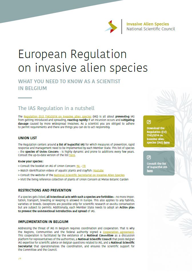 Scientific body supporting the Belgian implementation of the Regulation (EU) No 1143/2014 on invasive alien species