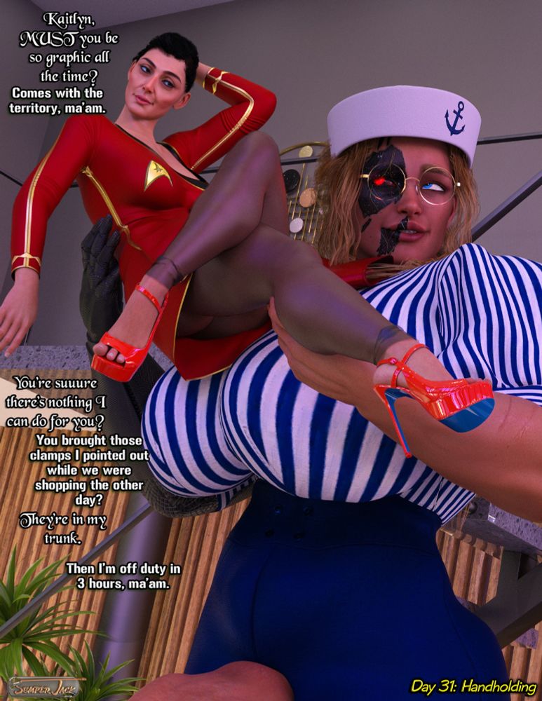 Sara and Annie are two sides of the same coin: both bottom-heavy dick slurpers with a mean streak. They despise each other, but if their rivalry goes on much longer they'll both be oiled up and shaking it to prove they're the best cocksleeve. #art #nsfwart #3dx #kinktober