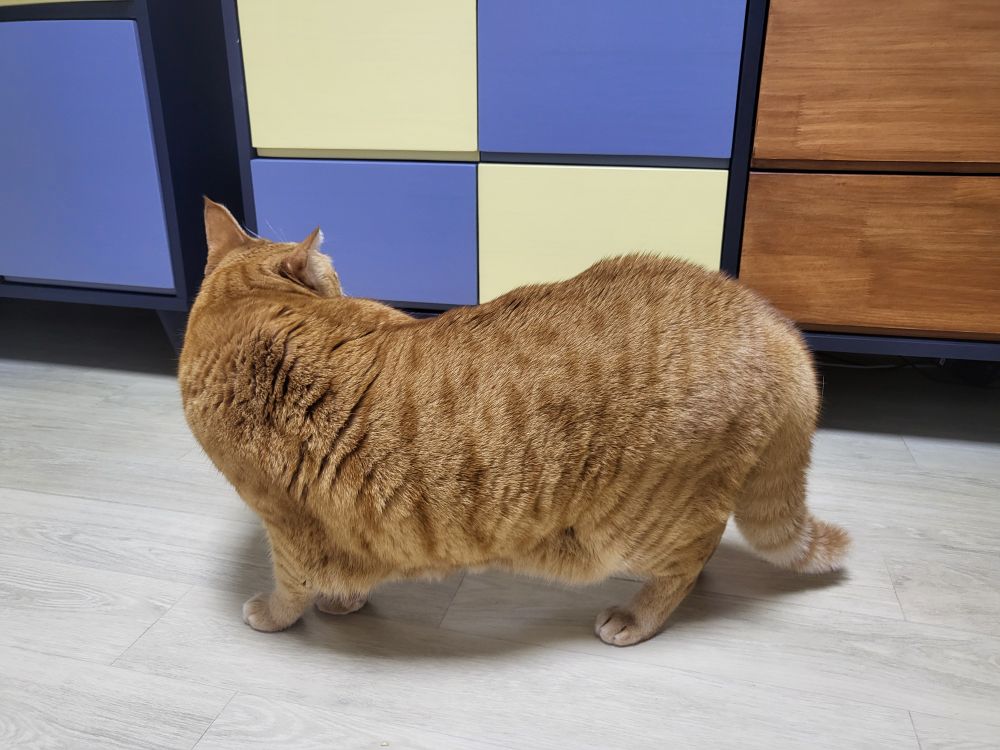 베란다 창에 비친 자기 모습 보고 놀라서 꼬리가 존나게 커지심