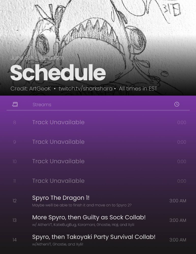 GANG I MESSED UP MY STREAM SCHEDULE, HERE'S THE PROPER ONE: