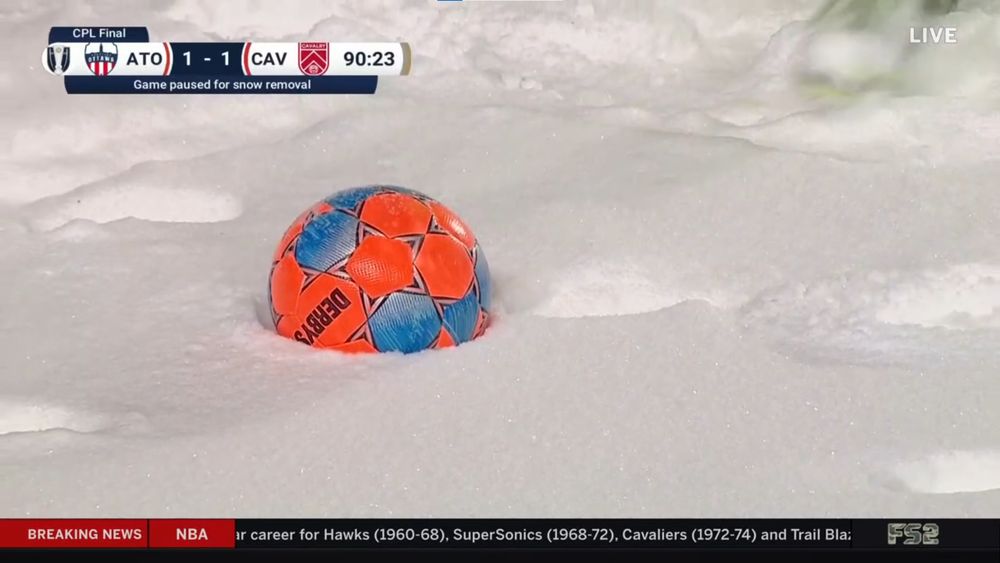 The ball doesn't hit the ground until it's almost in the goal...