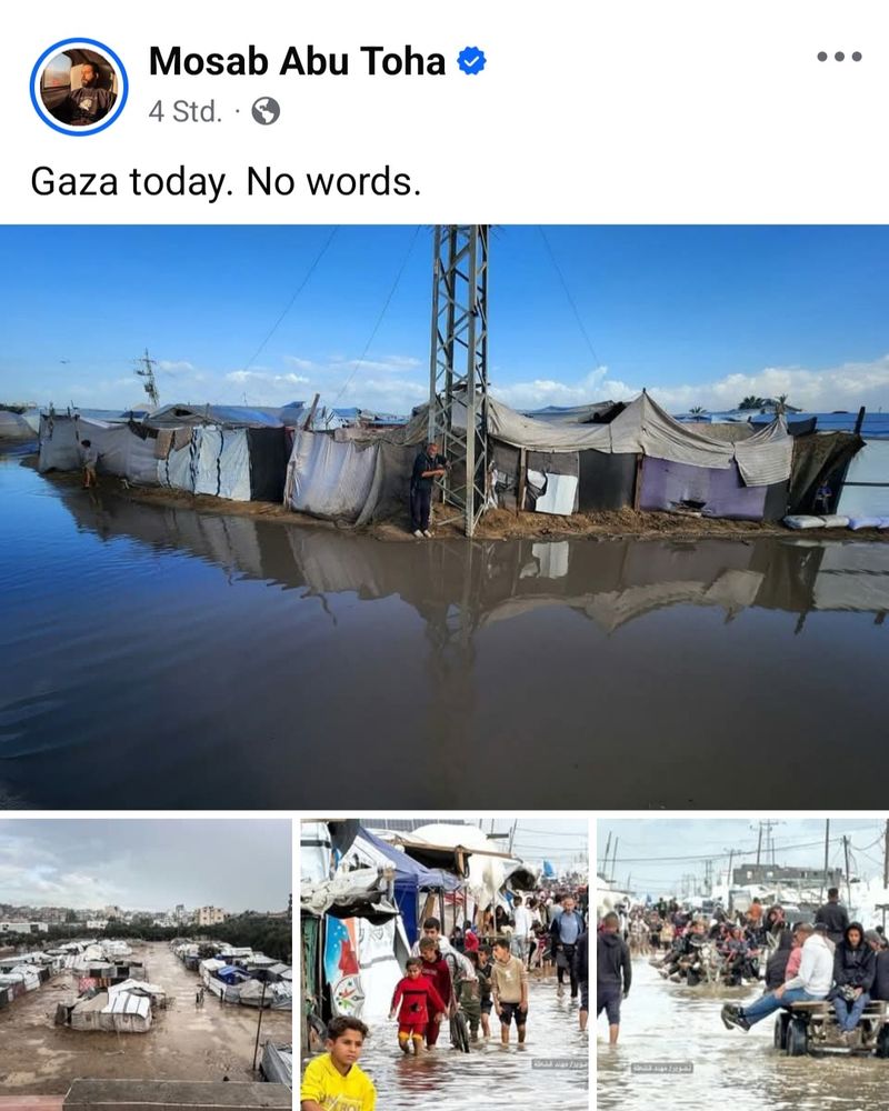 Today, Jerusalem experienced torrentuous, incessant rainfall. Water rushed down the slopes of the city everywhere. In Gaza, the lack of any actual efforts to provide people with proper shelter since the ceasefire went into effect became brutally evident.