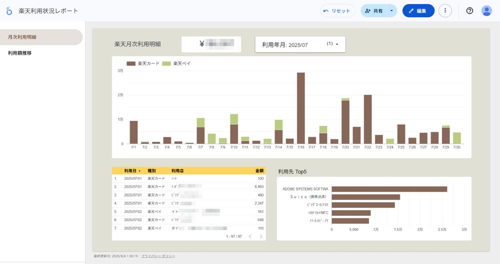 本当はカードの利用データと結合したいけど、ほぼすべての利用店名を名寄せしないといけないのでとてもしんどい。